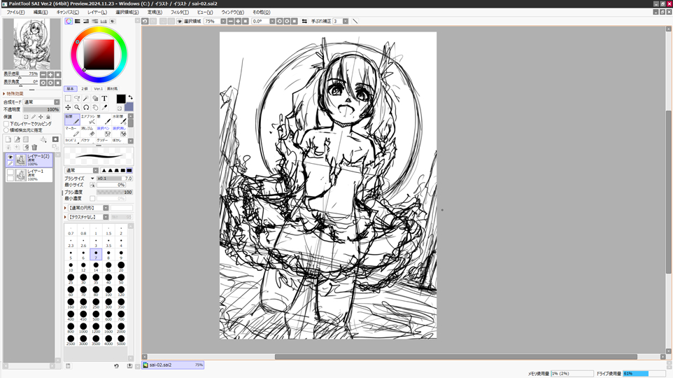 ちなみに、SAI2でラフと下描きを描いて、PSDファイルで出力、それをクリスタで読み込んだのですが
